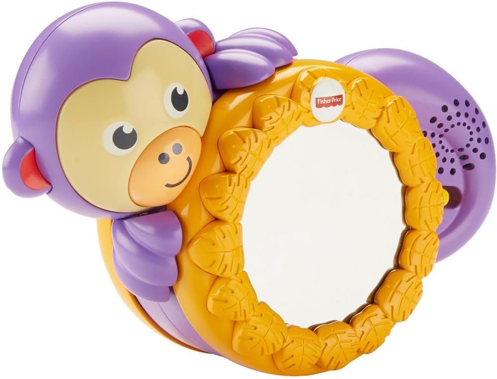 Богати на сетивни стимули: Ярки цветове на маймунка, огледало, забавни звуци и вълнообразни движения стимулират сетивата на вашето бебе.