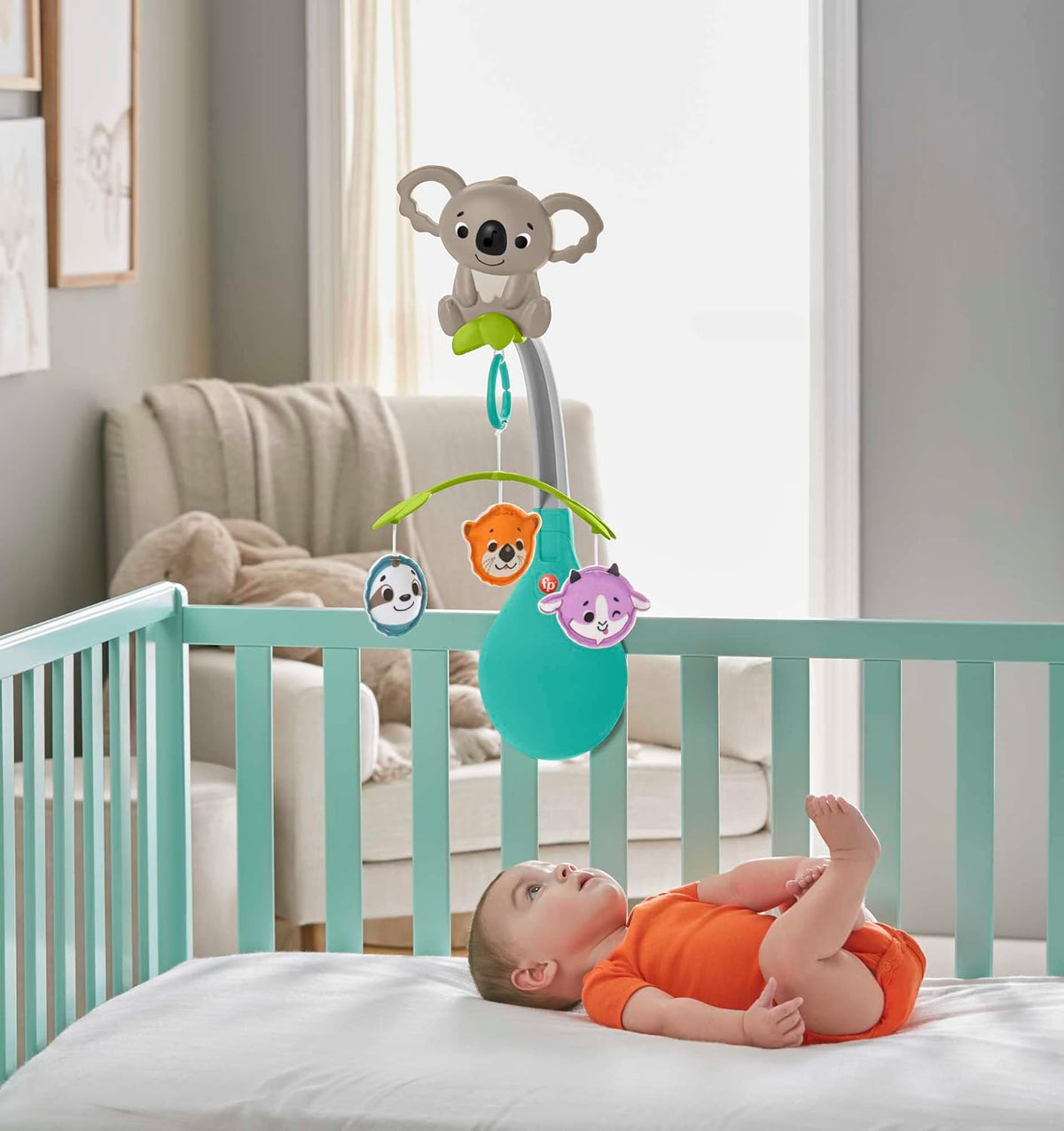 3-в-1 Soothe & Play Mobil Fisher-Price® е вашето всичко-в-едно решение за успокояване и забавление! Мобилът съдържа симпатично коала и още три приятелски висящи играчки с два странични мотива: цветен и висококонтрастен, които подпомагат най-ранното сензорно развитие на вашето бебе. С 3 режима на успокояване можете да го използвате като мобил за креватче, да премахнете мобила и да го прикрепите към сенника на количката, или да вземете играчката коала с вас, където и да отидете. Освен това мобилът възпроизвежда успокояваща музика, докато е прикрепен, и автоматично превключва на игрива музика, когато го премахнете за забавление в движение!