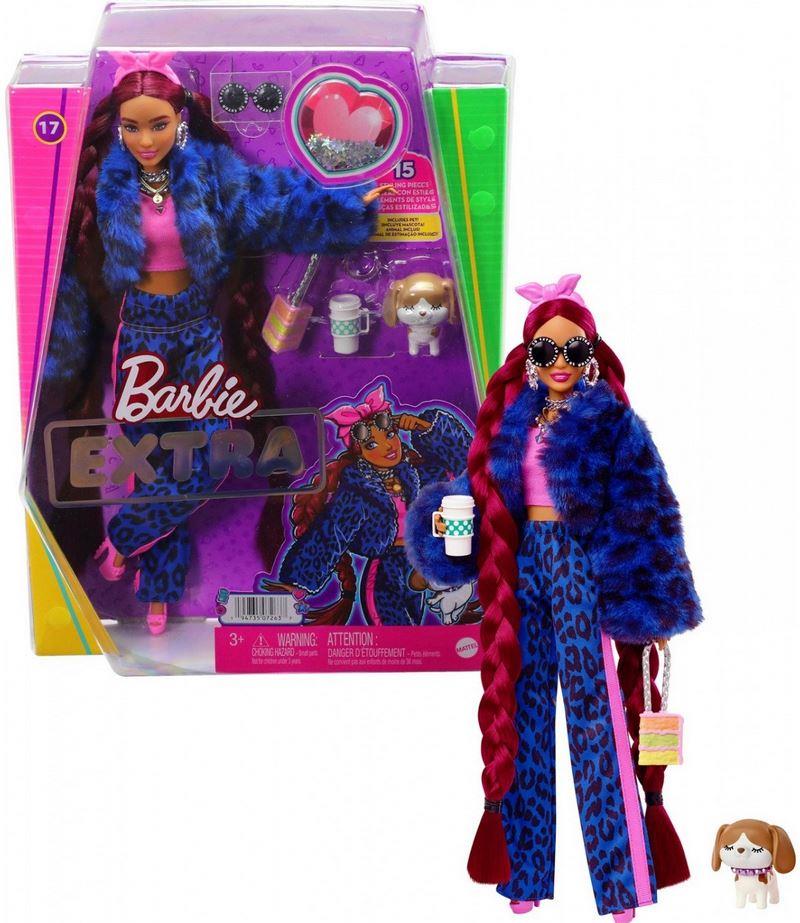 Барби Екстра куклите блестят с дръзки модни комбинации и ярки цветове, оставяйки силно впечатление! Всяка Барби кукла има свой уникален стил, който е игрив и преувеличен. Дори техните домашни любимци, всеки различен и всички сладки, имат огромна личност! Барби Екстра позволява на децата да изследват самоизразяването чрез стил и предлага вълнуваща модна игра с кукли, които могат да се поставят в различни пози. Всичко е насочено към забавление с мода, с брокати, гумени мечета, емоджита и забележителни прически, които носят EXTRA настроение, където и да отидат. Всяка се продава отделно, в зависимост от наличността. Куклите не могат да стоят сами. Цветовете и декорациите могат да варират.