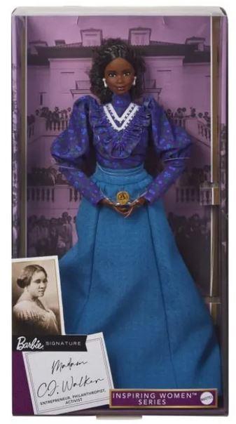 Серията Barbie Inspiring Women отдава почит на невероятните героини на своето време: смели жени, които са поемали рискове, променяли правилата и проправяли път на поколения момичета да мечтаят повече от всякога. Мадам С. Дж. Уокър, родена Сара Брийдуейв през 1867 г. на памучна плантация в Делта, Луизиана, е дъщеря на родители, които преди това са били роби и са станали наемни земеделци. Уокър става успешна предприемачка и първата документирана самостоятелна милионерка в САЩ. Barbie отдава почит на нейната непоколебима решителност с колекционерска кукла, създадена по нейния образ. Куклата включва и аксесоар „Чудесният растеж на косата на мадам С. Дж. Уокър“. Куклата Barbie мадам С. Дж. Уокър ще бъде прекрасен допълнителен елемент към всяка колекция. Включени са стойка за кукла и сертификат за автентичност. Куклата не може да стои самостоятелно.
