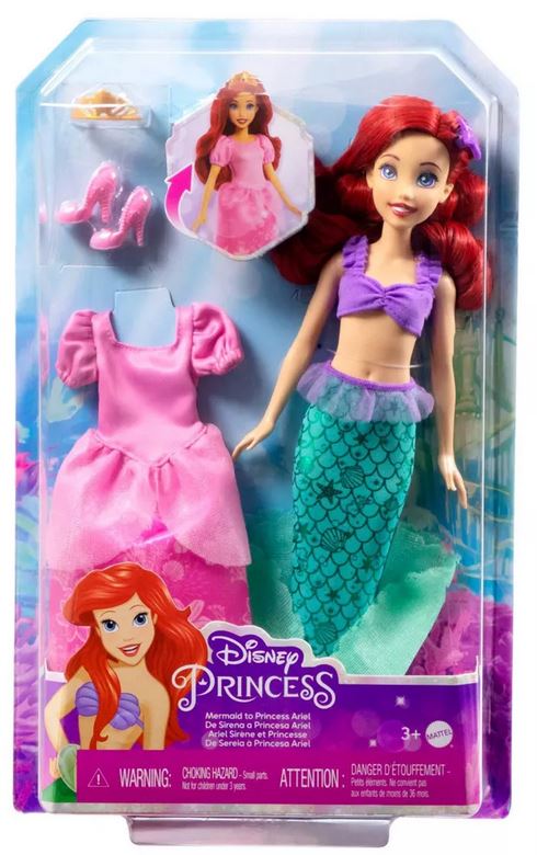 Вдъхновена от класическия филм на Дисни Малката русалка, тази свободолюбива кукла Ариел живее под морето, но мечтае да се присъедини към човешкия свят. Феновете ще бъдат възхитени да пресъздадат нейното вълшебно превъплъщение с тази кукла Ариел, която се превръща от русалка в принцеса! Ариел идва с двата си характерни визии: горнище от миди и русалски опашка за живот под морето и блестяща розова рокля за приключения над вълните. Куклата не стои самостоятелно. Цветовете и декорациите могат да варират.