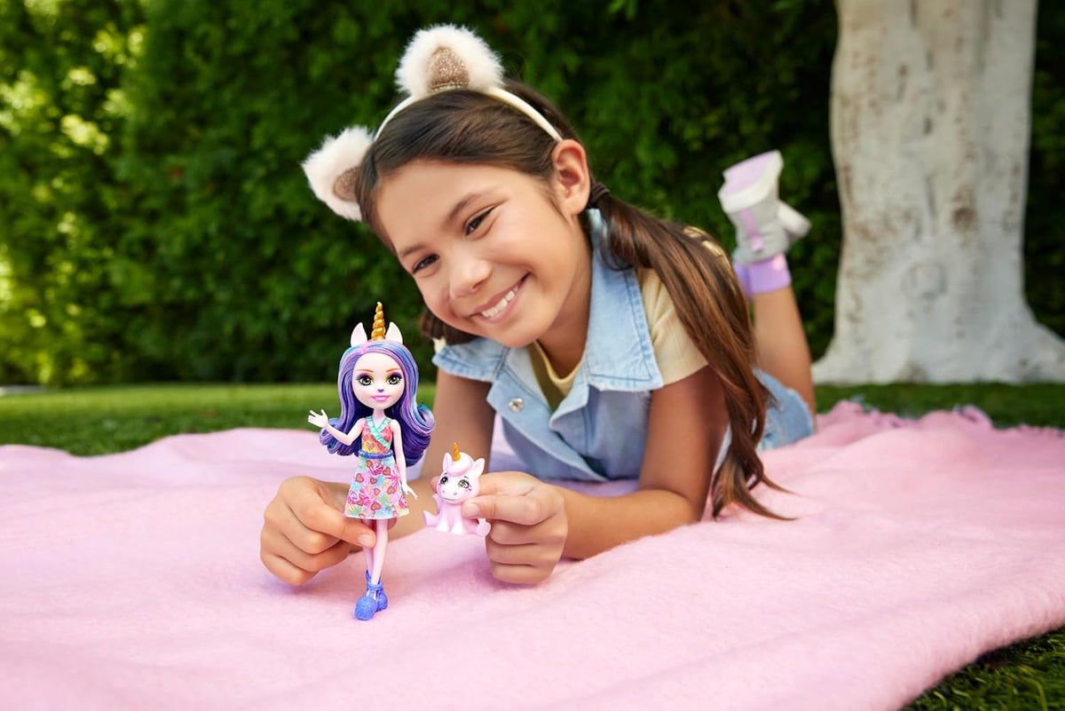 Открийте колекцията Enchantimals™ – група от сладки приятели, които имат специална връзка със своите животински най-добри приятели. Куклата Улия Еднорог и нейният животински приятел Пасифика винаги са заедно на плажа Сънишайн! Улия се гордее с изключително цветна коса, плажна тениска и подвижно крило. Нейната най-добра приятелка Пасифика винаги е до нея! Децата ще обожават да играят с тази специална връзка между най-добрите приятели и ще искат да съберат всички фигурки!