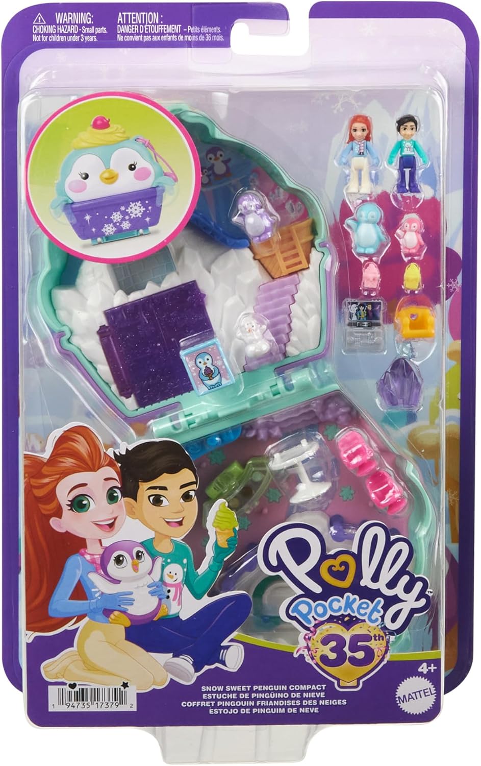 Този комплект Polly Pocket Snow Sweet Penguin включва две микро кукли, 13 аксесоара и 6 функции за разказване на истории за най-доброто зимно приключение!