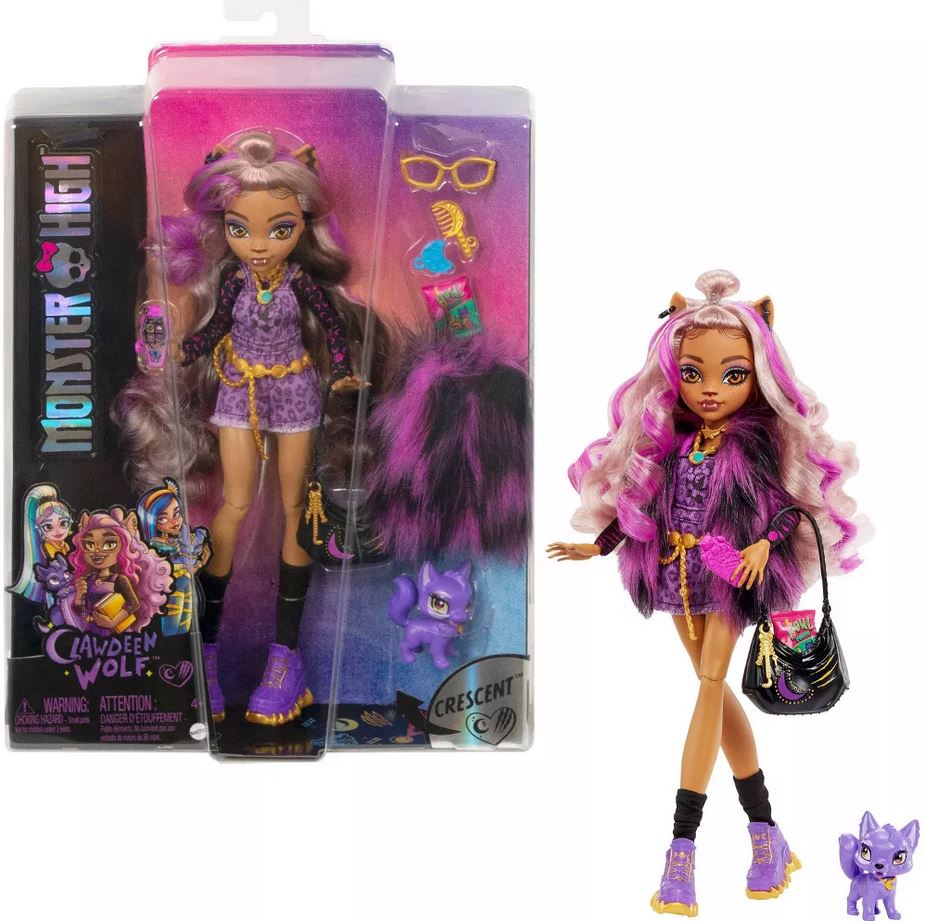 - Училището започна и духовете на Monster High™ се появяват в страшно страхотен стил! Куклата Clawdeen Wolf™ се разхожда по коридорите на Monster High™ в страхотен стил, който включва рокля с животински принт и дълга тениска с отпечатък на луна.