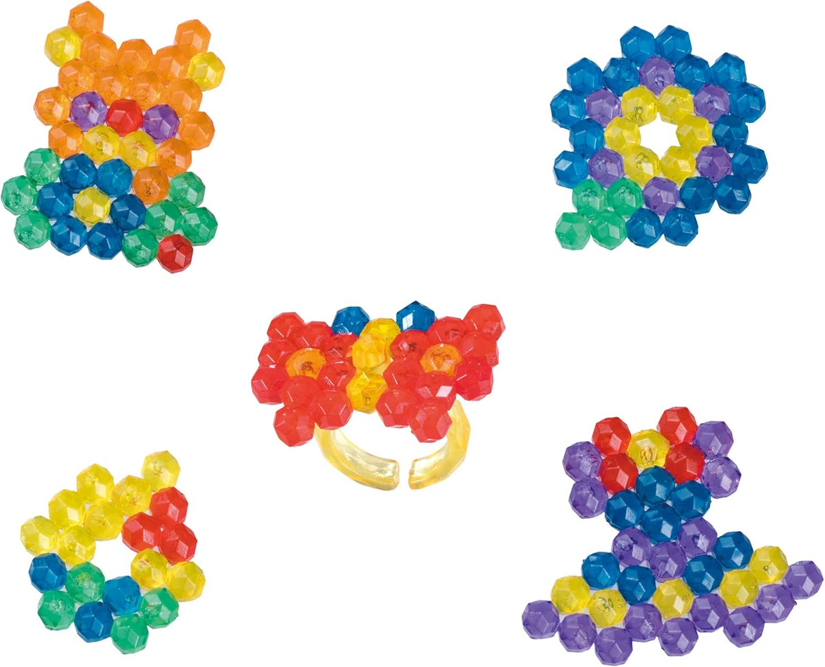 Aquabeads е оригинален продукт за създаване на перлени форми, активиран с вода. Изработен е от най-висококачествени материали и е забавен и безопасен за цялото семейство. С Mini Bling Ring Pack можете да създадете 5 блестящи форми - пеперуда, цвете, торта, рокля и катерица. Можете също така да закрепите 3 форми на пръстен – възможностите са безкрайни! Създаването с Aquabeads е лесно – просто създайте, напръскайте и те остават! Комплектът съдържа 1x Mini Bling Ring Pack (включва част за пръстен), пулверизатор и поставка. Формите на перлите са сменяеми, така че всеки ден можете да изберете нов стил.