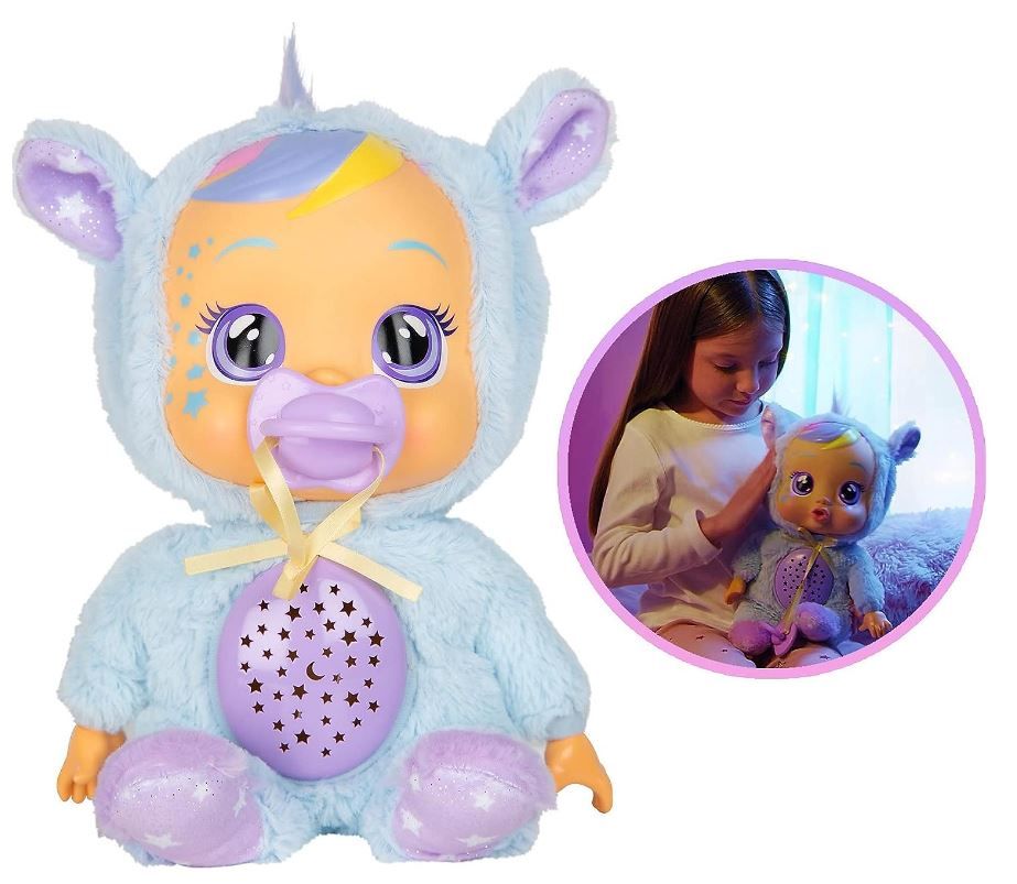 Открийте нашата кукла Cry Baby Goodnight Starry Sky Jenna, перфектният спътник за детската рутина преди сън. Тази очарователна интерактивна кукла е създадена, за да помага за успокояване и унасяне на децата преди лягане. Нейното меко тяло и много меки пижами са идеални за прегръдки.