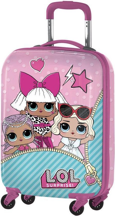 Куфарче LOL Surprise, Outrageous: Това куфарче е идеално за ръчен багаж в самолет. Лесно за ползване и подходящо за уикенд пътувания. Оборудвано е с 4 въртящи се колелца, което го прави лесно за бутане. Вътре има отделения за сигурно съхранение на вещи, като ластик и джоб с цип. Бъдете добре подготвени за пътуване с това куфарче! Отличен подарък за рожден ден или празници.