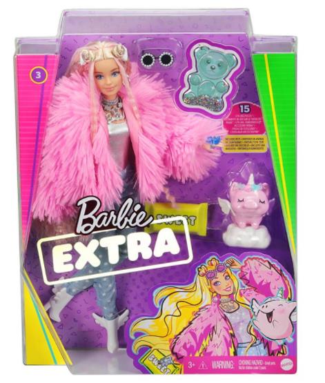 Куклите Barbie® Extra предлагат смели модни творения и ярки цветове, създавайки големи изявления! Всяка кукла Barbie® има свой уникален стил, който е игрив и прекалено екстравагантен. Техните домашни любимци, всеки различен и очарователен, също имат огромна личност! Barbie® Extra позволява на децата да изследват самоизразяването чрез стил и предлага вълнуващо изживяване с дрехи и модни аксесоари, както и с персонализирани кукли. Всичко е за забавление с мода, брокати, гумени мечета, емоджита и впечатляващи прически – те носят EXTRA вибрации навсякъде, където отидат. Всяка кукла се продава отделно, в зависимост от наличността. Куклите не могат да стоят сами. Цветовете и декорациите могат да варират.