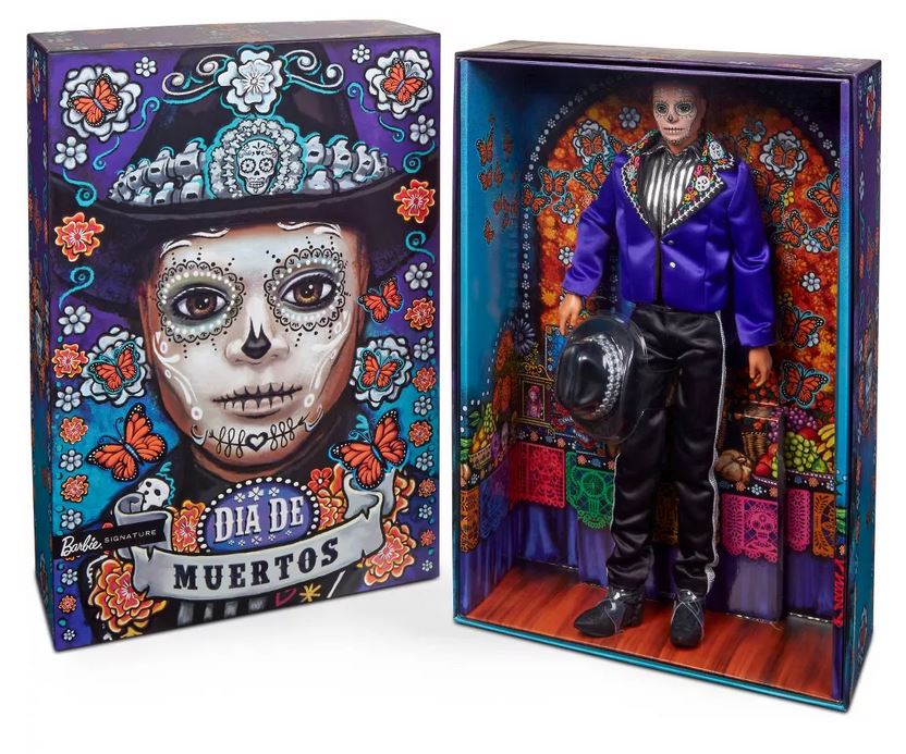 Серията Barbie® Día De Muertos празнува обичаите, символите и ритуалите, които често съпътстват този празничен период на спомен. Куклата на Ken е изключително привлекателна в синьо сако с бродирани костни детайли на яката. Шапката с украса от захарна черепа рамкира лицето му с рисуване в стил calavera. Нека куклата 2023 Día De Muertos Ken® стане част от вашите ценни празнични традиции.