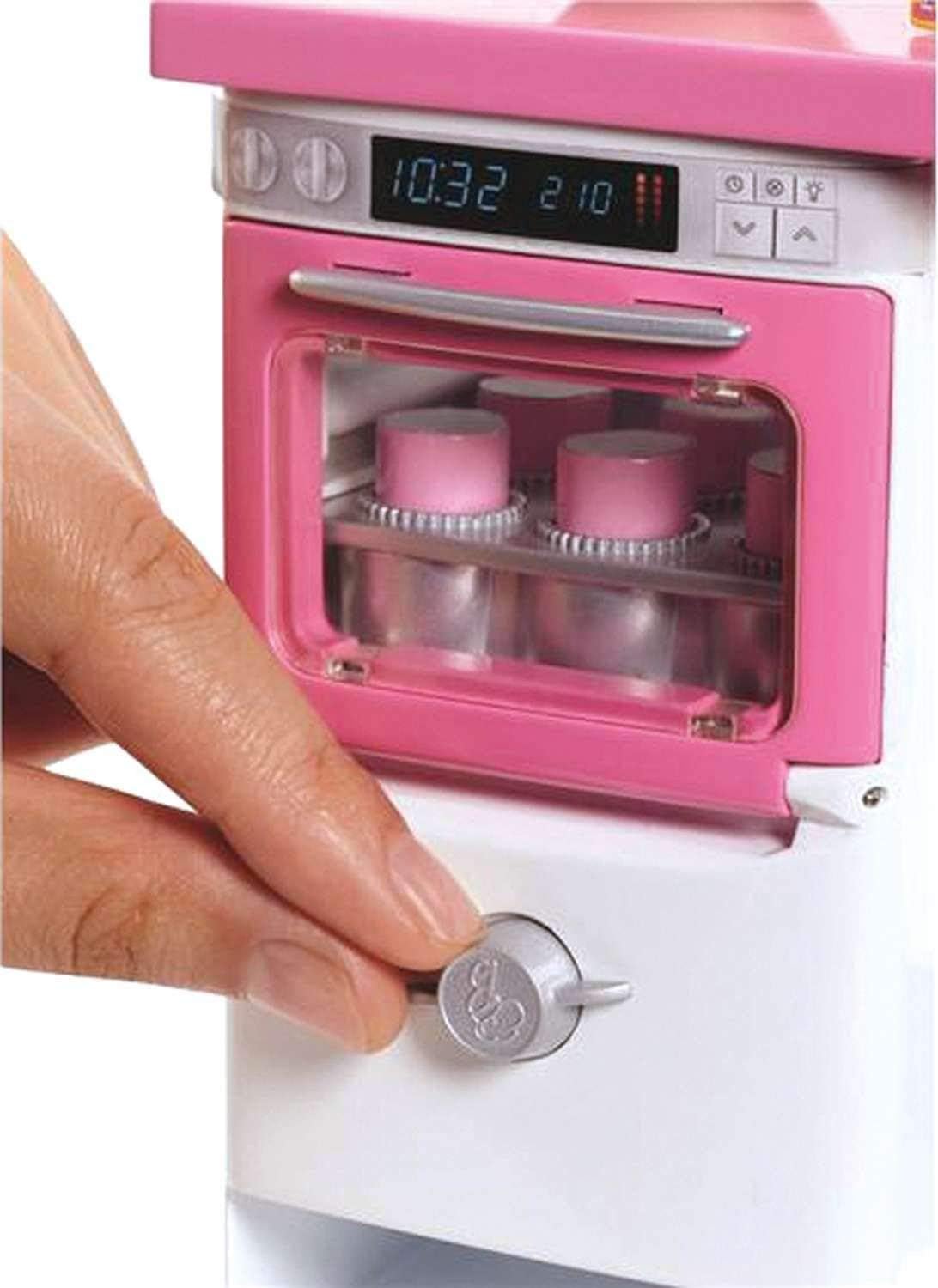 Насладете се на забавлението при готвене с игровия комплект, който включва кукла Барби® и фурна с магически изненади – таймерът звъни, вратата работи, кексът и мъфините "растат", а върховете на мъфините имат цветно променяща се глазура!