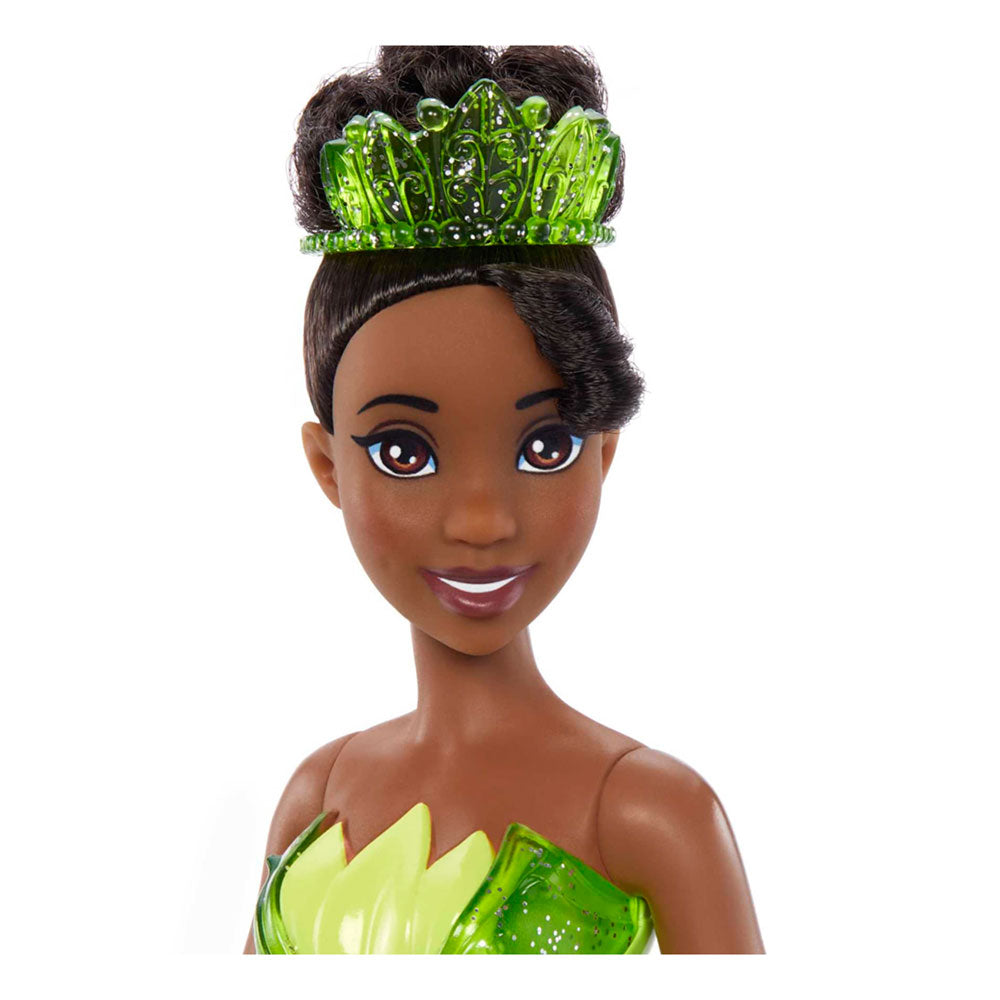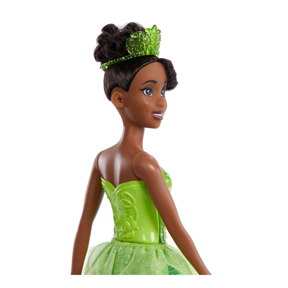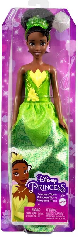 Запознайте се с тази кукла принцеса Тиана, вдъхновена от амбициозната и решителна героиня от филма на Дисни "Принцесата и жабокът". Тази адаптивна модна кукла е облечена в блестяща рокля с аксесоари, включително обувки и тиара. В своя характерен вид от филма, куклата Тиана е готова за всяко приключение! Куклата не може да стои самостоятелно. Цветовете и декорациите могат да варират.