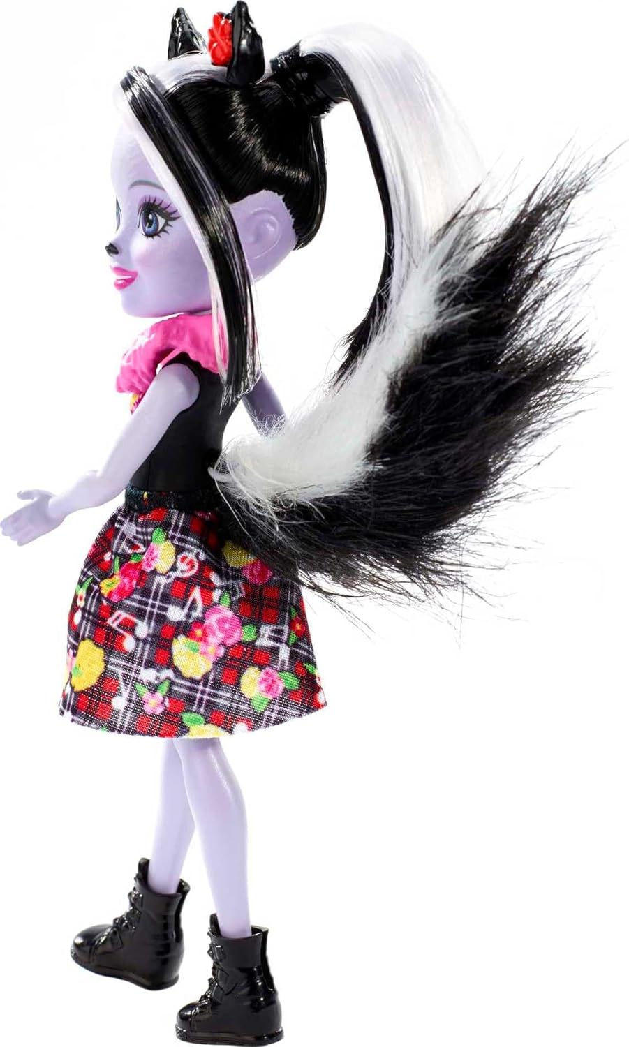 Нека ви очароват симпатичните кукли Enchantimals™ и техните животински приятели. Sage Skunk™ и нейният верен приятел Caper™ порче споделят специална връзка – винаги са заедно и са много подобни! Sage Skunk™, обитателка на рок света, носи смело облекло с флорални и каре мотиви, бойни ботуши и розово скулптурно палто. Децата ще бъдат възхитени от нейните очарователни детайли, които съвпадат с тези на нейния животински приятел, като райе на опашката и порчешки уши. Caper™ порчето също има прекрасни аксесоари, включително пухкава опашка и симпатично изражение на лицето. Децата ще се забавляват, играейки с тях и създавайки свои собствени приключения с Enchantimals™! Съберете ги всички, за да създадете своя магичен свят на Enchantimals™ (всяка играчка се продава отделно, в зависимост от наличността). Комплектът включва кукла с модни аксесоари и животинска фигурка. Цветовете и декорациите могат да варират.