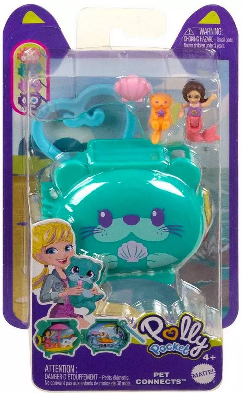 Приготви се за парти с сгъваеми играчки Polly Pocket™! Този витринен комплект Polly Pocket Pet Connects съдържа 8 сладки животински фигурки.
