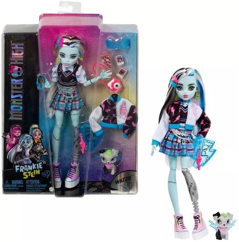 - Училището започна и духовете на Monster High се появяват в страховито страхотен стил!Куклата Франки Щайн носи електрифицираща мода с карирана пола, риза с релефни стрели и страховито-шик безръкавно яке.