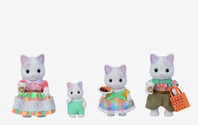 Каним ви в света на Sylvanian Families с нашия комплект - семейство котки Лате! Този сладък комплект съдържа четири фигурки: майка, баща, дъщеря и син, всички облечени в цветни и детайлно изработени дрехи. Създадени с най-голямо внимание към детайла, тези симпатични котки са перфектното допълнение към колекцията на всеки любител на Sylvanian. Всяка фигура е уникална и облечена в индивидуално проектирани костюми.