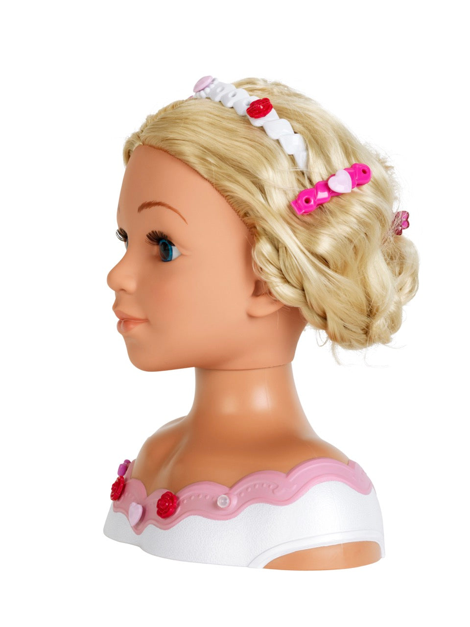 Вижте това, крале и кралици на стила: с тази сладка глава за грим и оформяне на прически малките деца могат да изразят своята креативност и да изпробват различни стилове. Дългата, руса коса може да се измие, среши, разресва и украси с фиби за коса и цветни мъниста. Младите гримьори дори могат да опитат да се гримират. Включен е дерматологично тестван козметичен комплект с балсам за устни, сенки за очи и руж. Това не само осигурява много забавление, но и развива моторните умения и въображението на младите стилисти.